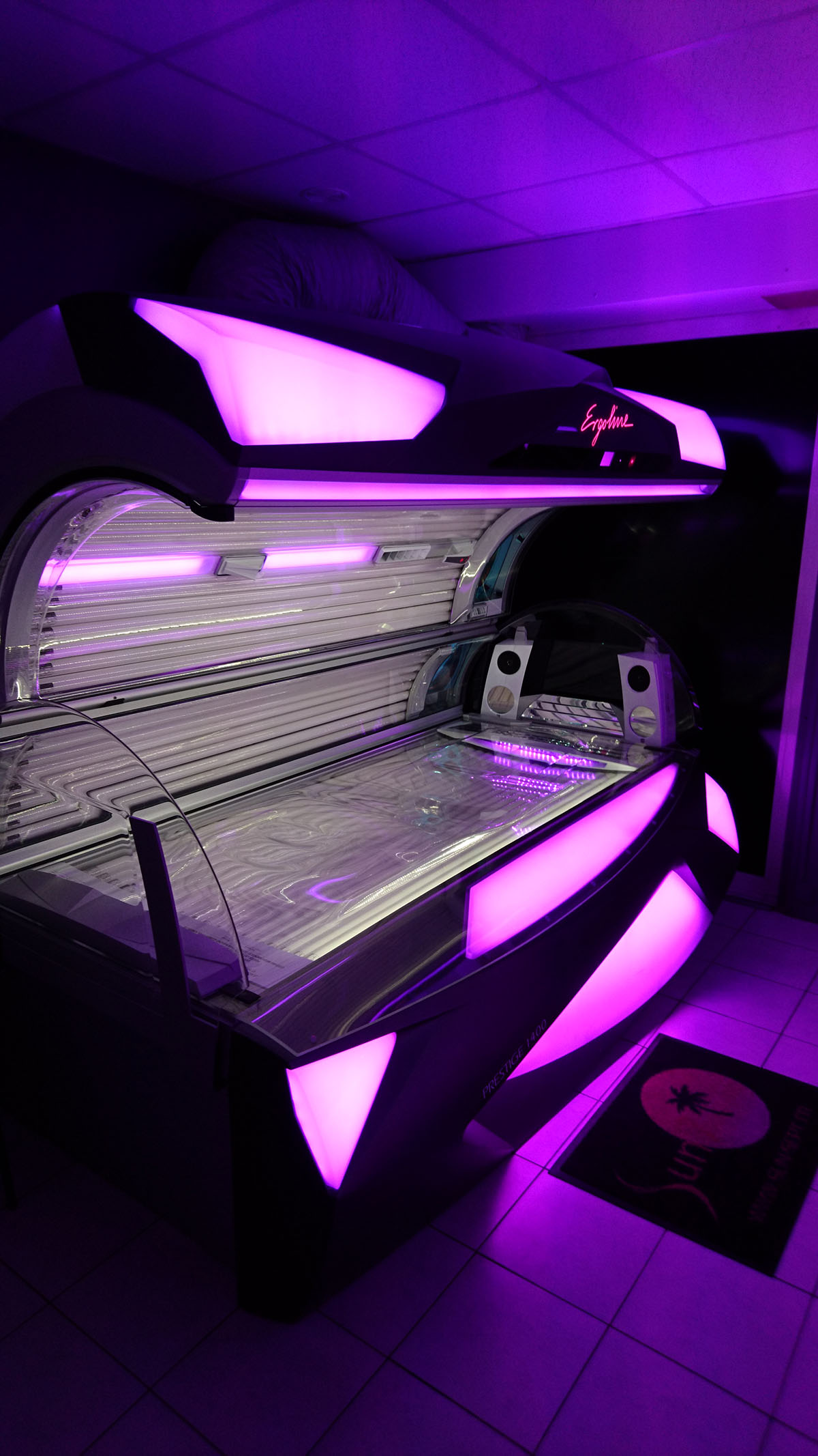 Des solariums au "design" moderne et ergonomique, de dernière génération font que bronzer à SUN 7 est un véritable plaisir.Toutes nos cabines sont équipée de programmes musicaux, de leur propre espace « zen » pour vous permettre de vous démaquiller et de vous hydrater. Accordez-vous le temps de repos et de détente nécessaires. Pour un résultat de bronzage impressionnant du corps et du visage, les solariums sélectionnés par Sun 7 sont parfaitement équipés et vous assurent une sécurité optimale pour une bonne mine toute l'année...